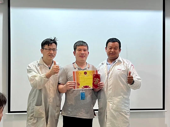 會(huì)議開始后,主持人首先介紹會(huì)議內(nèi)容,并帶領(lǐng)大家對(duì)第一階段TPM開展的活動(dòng)及TWI結(jié)果進(jìn)行了精彩回顧。隨后進(jìn)入到激動(dòng)人心的頒獎(jiǎng)環(huán)節(jié),華南工廠領(lǐng)導(dǎo)為3個(gè)優(yōu)秀團(tuán)隊(duì)進(jìn)行了頒獎(jiǎng)以及與TWI優(yōu)質(zhì)的培訓(xùn)文檔成員合影。